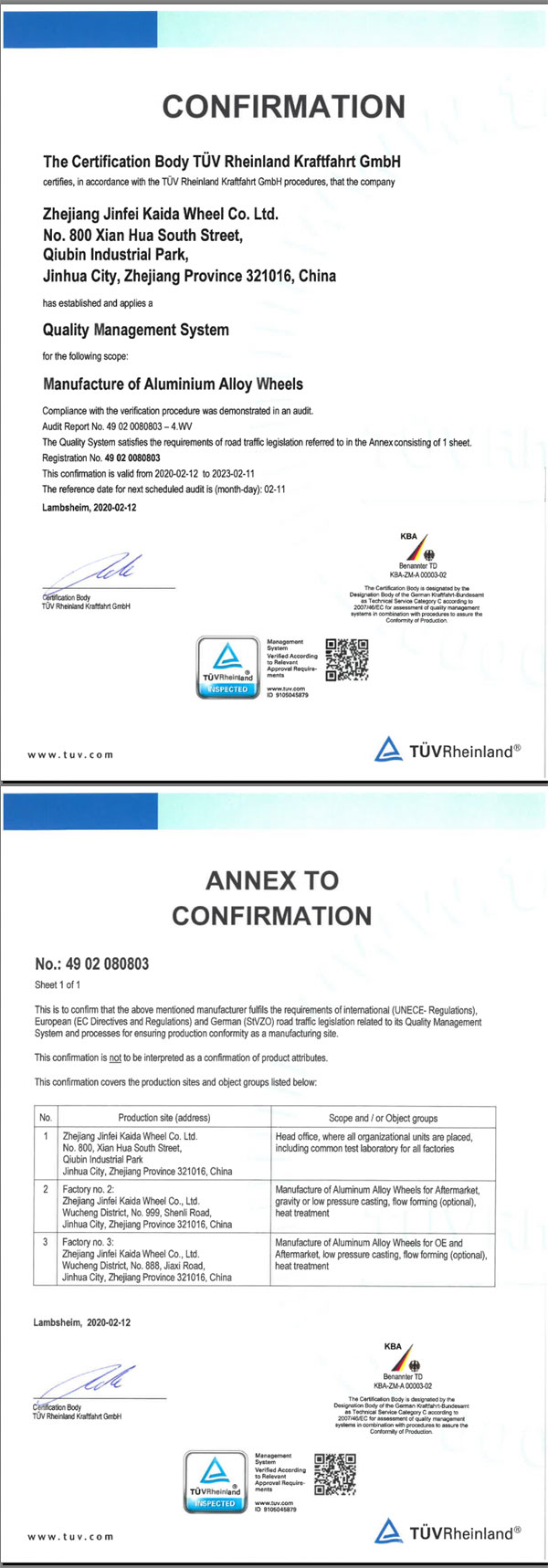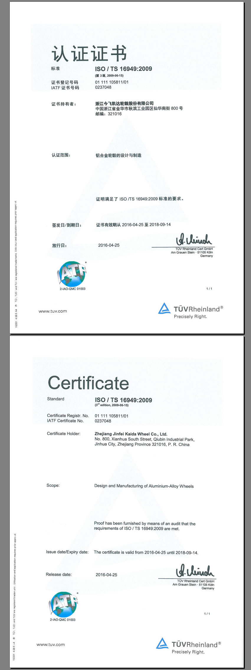 公司明确提出 “追求产品零缺陷,优化服务创品牌”的质量方针,在生产各工序、环节建立了严格的质量控制体系,1998年公司就通过了IS09001质量体系认证,2004年通过了QS-9000、ISO/TS16949质量保证体系审核,又先后通过了美国SFI、日本VIA实验室认证、德国TUV认证,并通过了北京奔驰、一汽夏利、昌河铃木、豪爵铃木、钱江集团、新大洲本田等公司的第二方审核和美国戴姆勒-克莱斯勒、美国哈雷、意大利比亚乔等国际整车厂商的考评。于2007年4月获得环境管理体系认证证书。